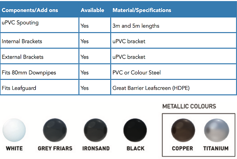 Marley Typhoon has a high front which helps hide untidy roof lines and provides a very neat end result. Marley Typhoon is available with internal brackets for a smooth clean finish. Select external brackets for a completely different look, the visible brackets become a design feature and make the inside of the spouting easier to clean. Marley Typhoon has a large capacity which combined with it’s shape delivers a batter rate of water flow. This enables the spouting to cope better with sudden downpours as well as decreasing the likelihood of leaf and sediment build-up (a bonus if you are collecting the rainwater for household use).